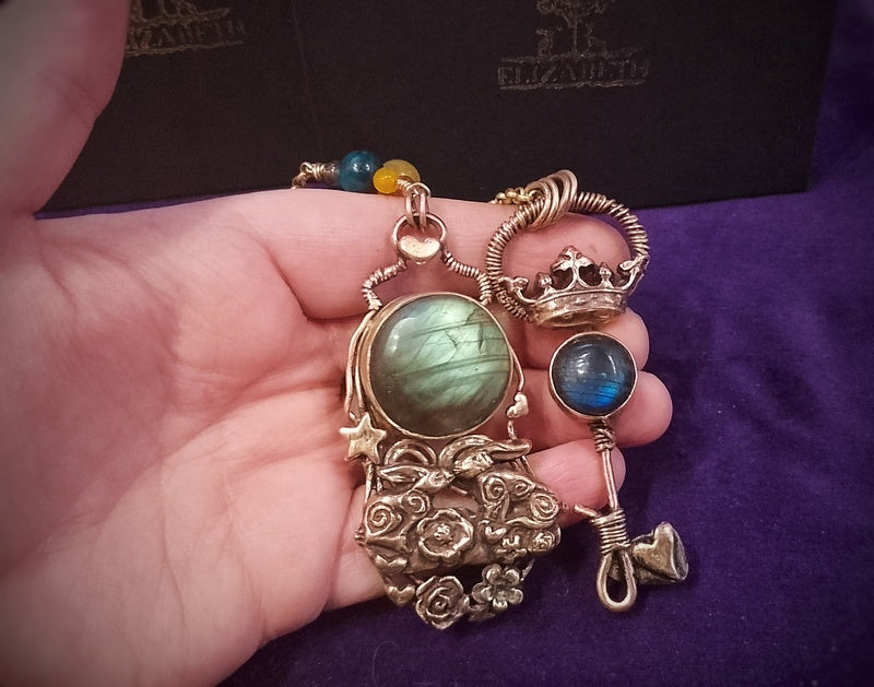 Kissing Hares Celestial Labradorite Moon Necklace