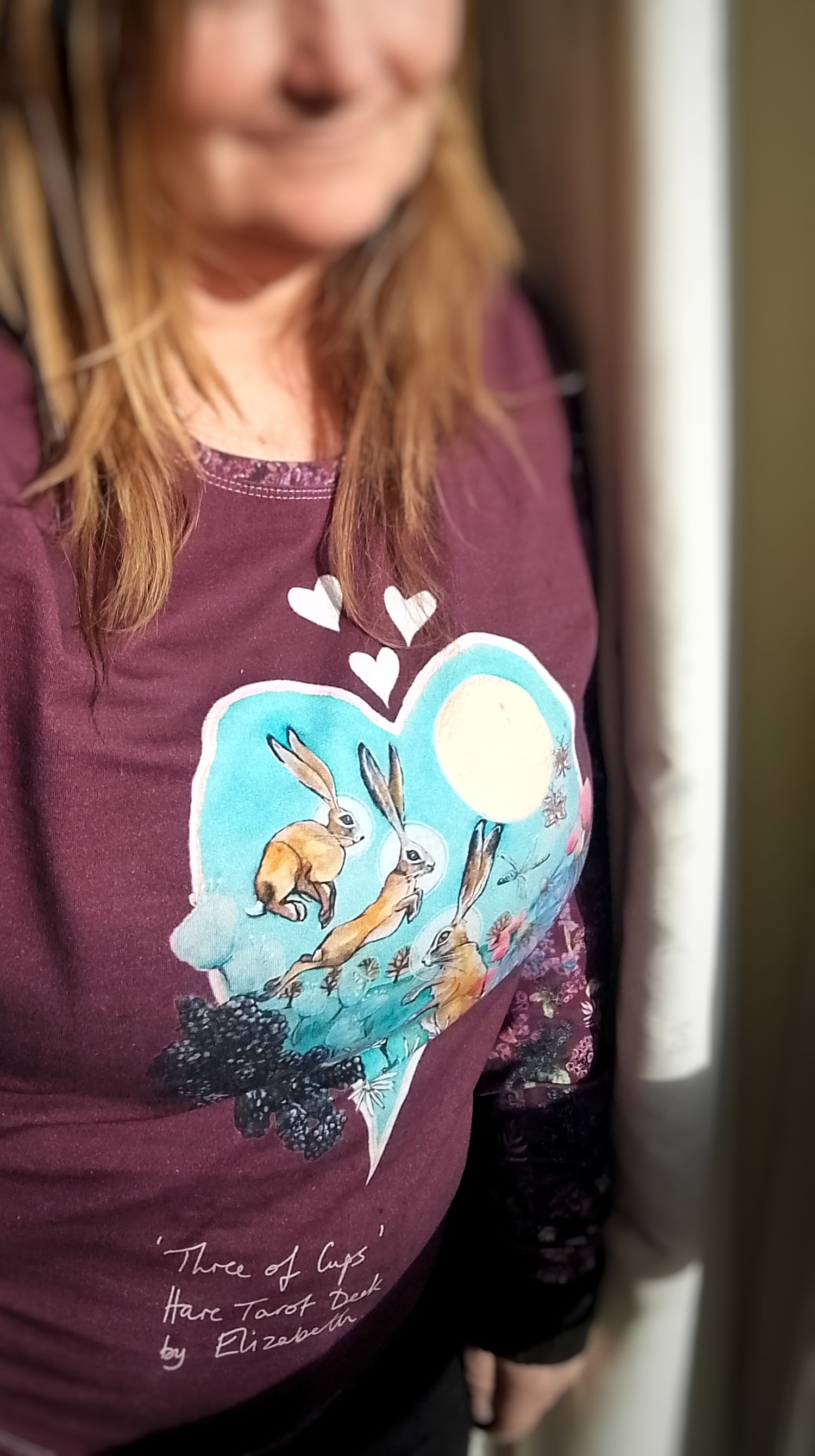 "My Hare t shirt arrived today, it's perfect, excellent quality of both print and garment, vivid colours and a generous length. Thank you and blessings xx"