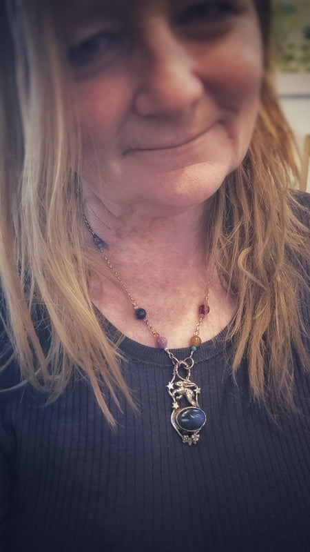 A beautiful and unique piece of wearable art, hand crafted by Elizabeth. It arrived in lovely gift packaging and will be a treasured piece of meaningful jewellery.