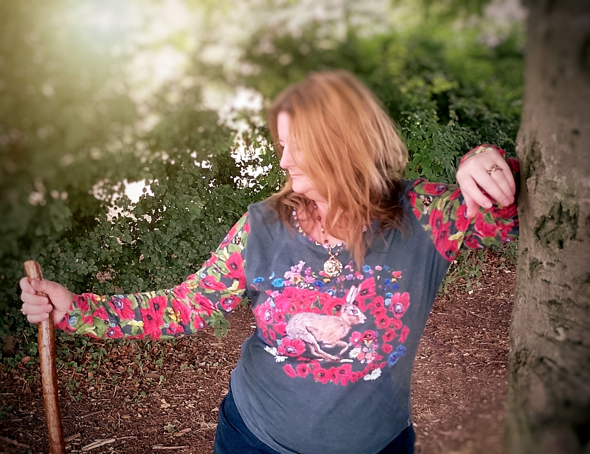 Beautiful running hare amongst the poppy wildflower fields on this unique long sleeved dress up dress down t-shirt.