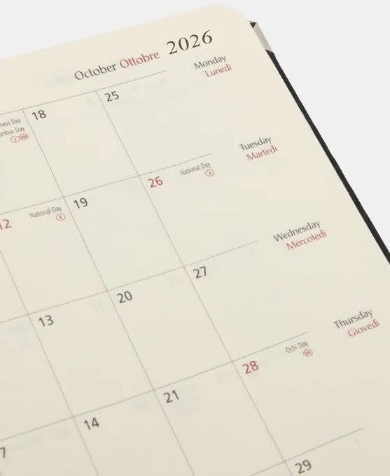 Handbound with metal corner protectors, your customised diary 2026 is made using traditional bookbinding methods using book blocks, which are sourced from Florence Italy.