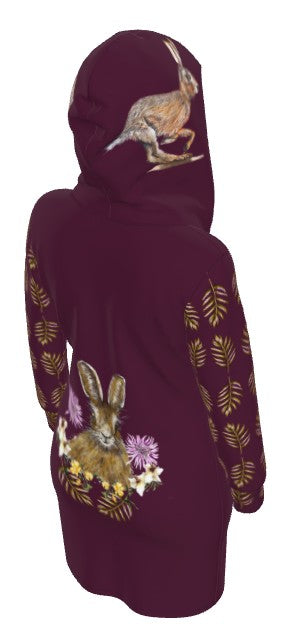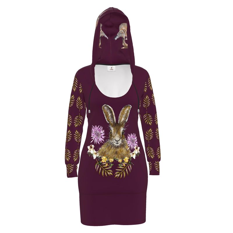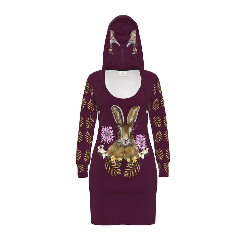 Stunning Hoodie Dress for Hare Lovers to warm the cockles of your heart - combine comfort and practicality with this loose fit hoodie dress for all shapes and sizes.