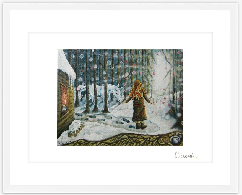 Creating warmth in your life and home will carry you through the dark times. In this painting it is the longest night (Winter Solstice) - a fruitful time to set your intentions so that they can manifest and gain momentum in your life in Spring time.