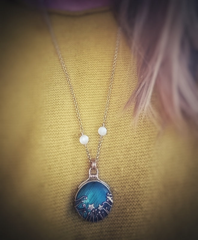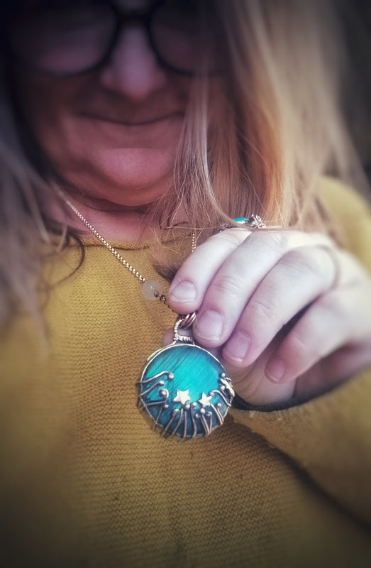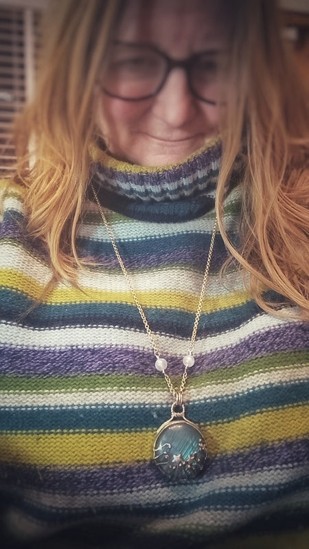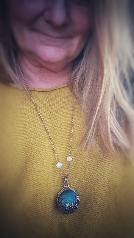 A beautiful and unique piece of wearable art, hand crafted by Elizabeth. It arrived in lovely gift packaging and will be a treasured piece of meaningful jewellery.