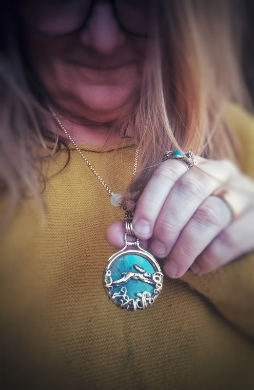 Been following your page because I have inherited my mums love of hares but this necklace spoke to me last week after learning I had lost a family member and a friend on the same day. Thanks to you I now have a wearable work of art to remember them both. Xxx