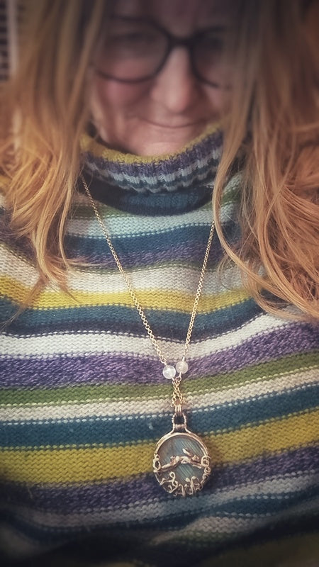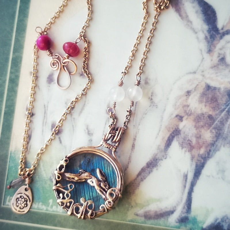 A beautiful and unusual Labradorite Hare Necklace, unique and one of a kind, to bring you increased awareness of other sight, as well as good luck in new beginnings.